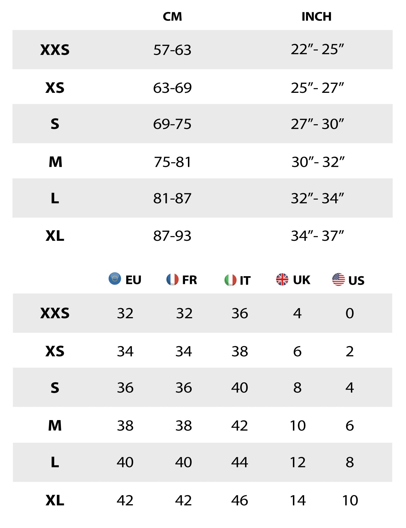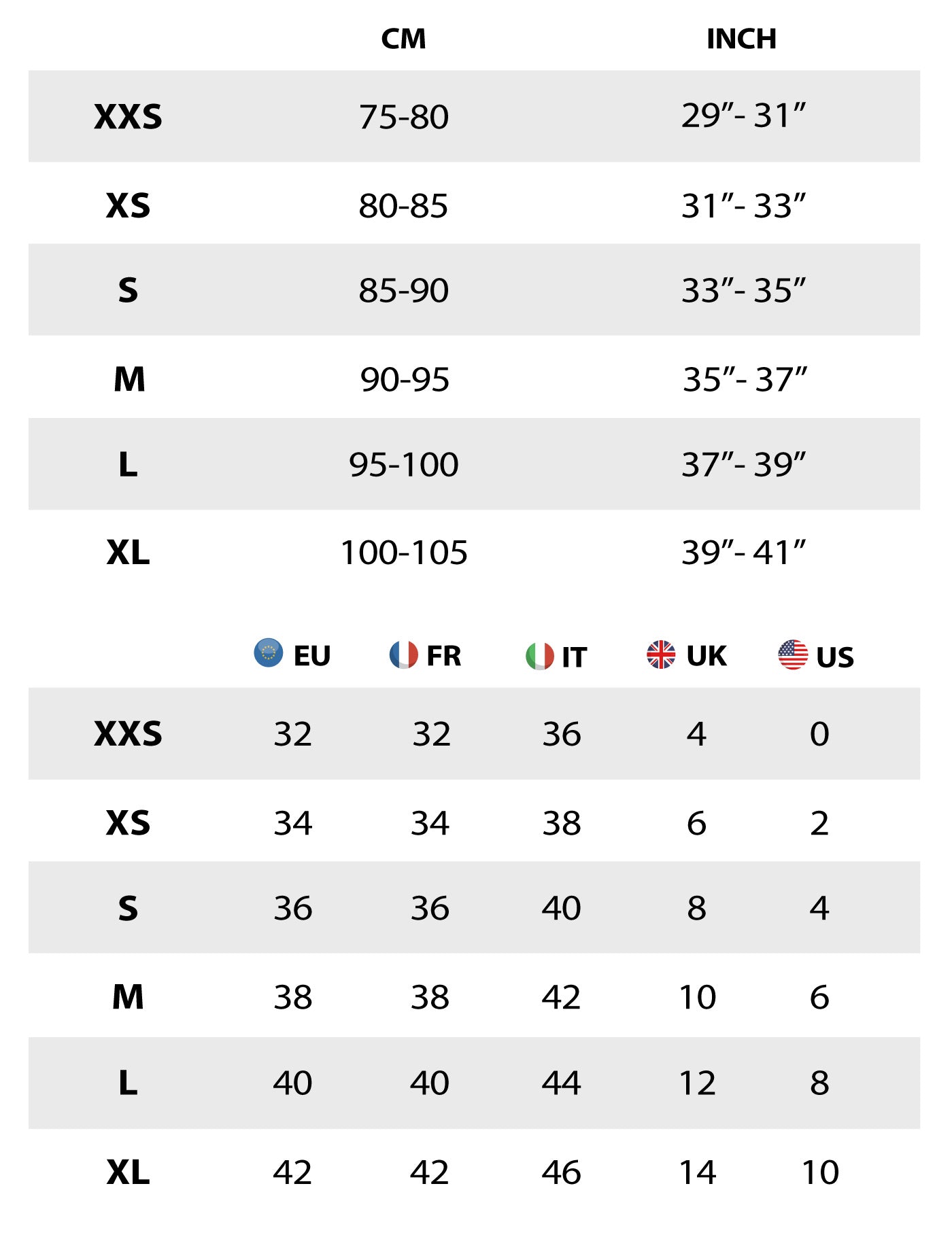 Este guia de tamanhos refere-se ao corpo do cliente e não ao produto.